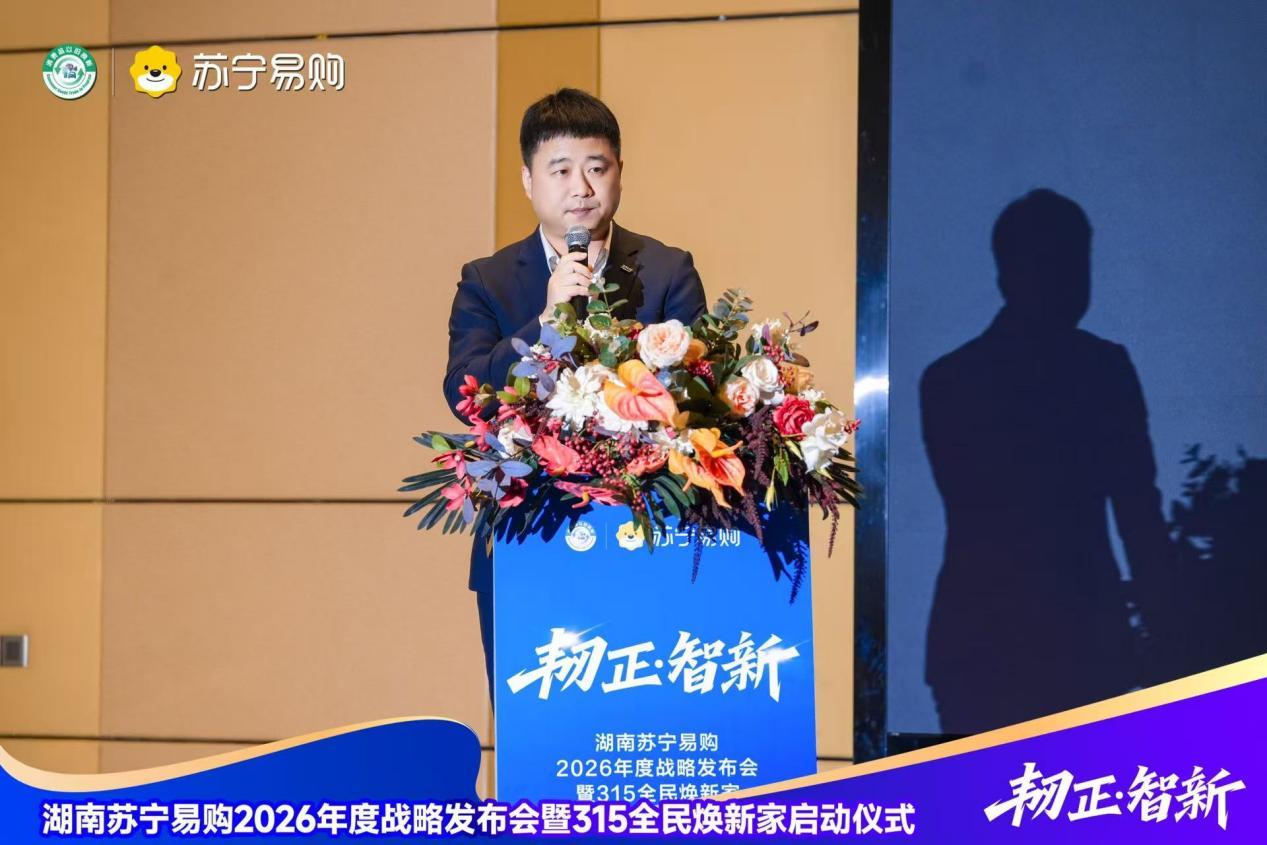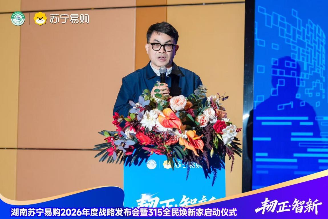 3月10日下午,湖南苏宁易购2026年度供应商大会暨“315全民焕新家”启动仪式在长沙隆重召开。苏宁易购集团南部战区总裁戴冯军、湖南大区总经理陈爽出席活动。湖南省新零售行业协会代表,以及来自海尔、海信、美的、方太、博西等各大知名家电品牌的供应商总经理,中国电信、银联及多家主流媒体代表齐聚一堂,共同开启苏宁易购“315全民焕新家”品质消费盛典。